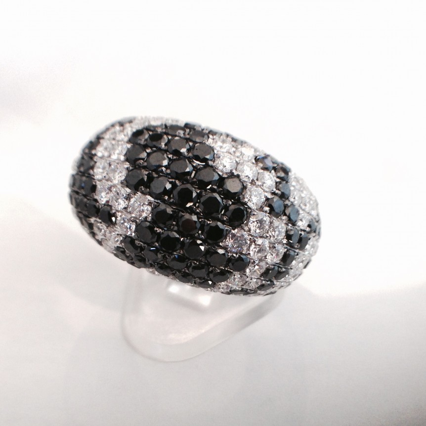 Read more... Black or white diamonds? Why not both? This set of earrings and ring has caught our eyes and our hearts here at Crown. Immaculately detailed. Pulverising in its effect. The dazzling appearance is reminiscent of the poise, grace and grandeur of a Dalmatian. The ring showcases 117 black diamonds of 2.5 ... Read More